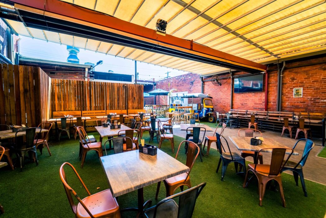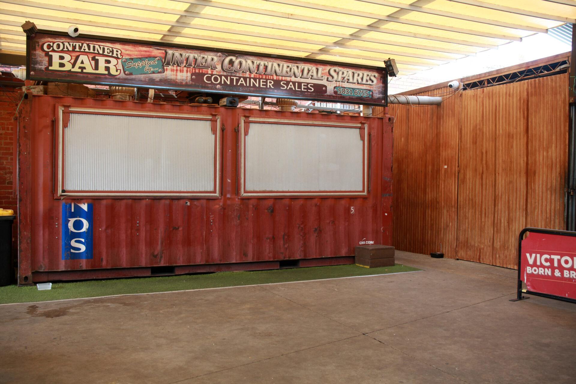 A relaxed bar, located outdoors but undercover, with its own container bar, DJ booth, and heating for the cooler months.